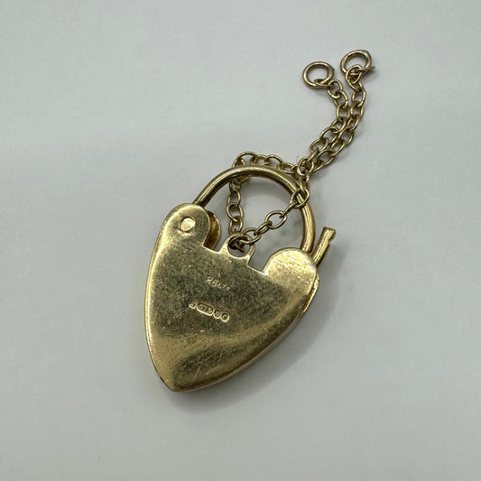 9ct Vintage engraved love padlock with safety chain