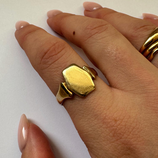 Sold out9ct Geometric sunburst signet ring